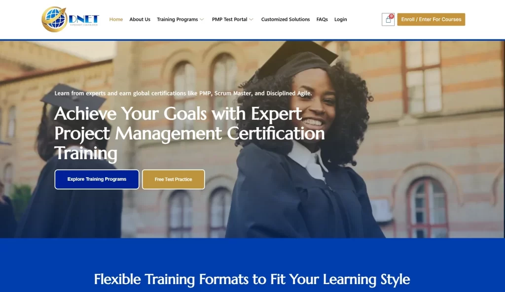 DNET Investment Corporation aimed to provide high-quality project management and Agile training for professionals worldwide. The challenge was to deliver flexible learning options, including online live classes, corporate sessions, and in-person training, while maintaining engagement, practical understanding, and exam readiness for certifications like PMP®, CAPM®, Agile, Scrum, and Disciplined Agile.