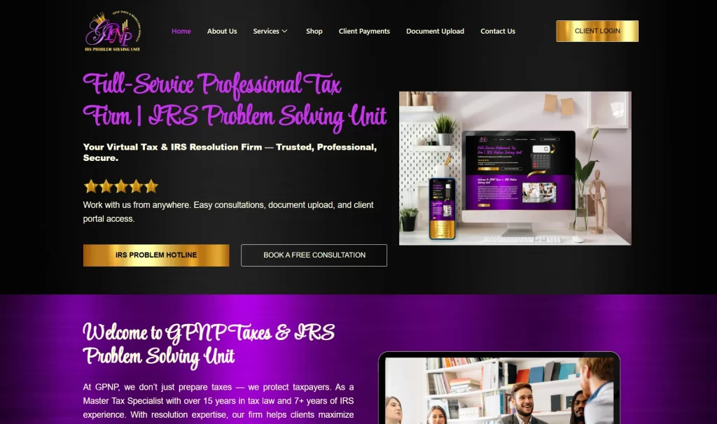 GPNP Taxes sought to provide comprehensive, virtual tax preparation and IRS resolution services while ensuring precision, compliance, and peace of mind for clients. Many taxpayers faced unfiled returns, IRS notices, audits, or complicated tax issues, and needed expert guidance from a trusted professional. The challenge was to manage client communications, document uploads, and IRS case resolution digitally without sacrificing quality or security.